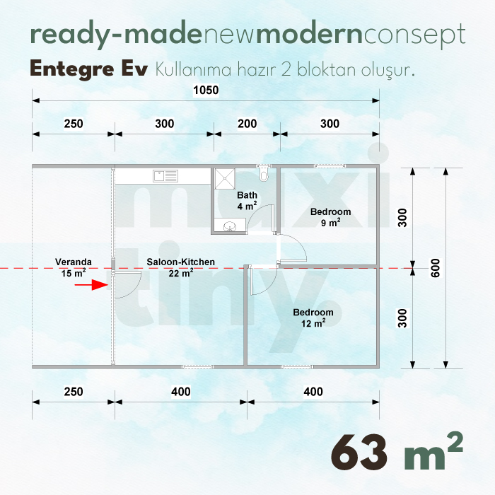 MONOBLOK ENTEGRE PAKET EV MODEL E01 63 m2