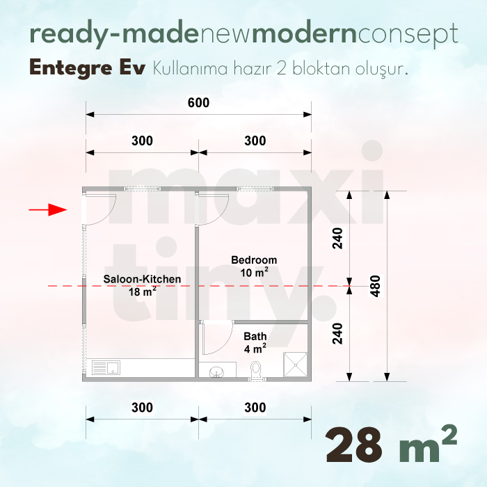 MONOBLOK ENTEGRE PAKET EV MODEL E02 28 m2