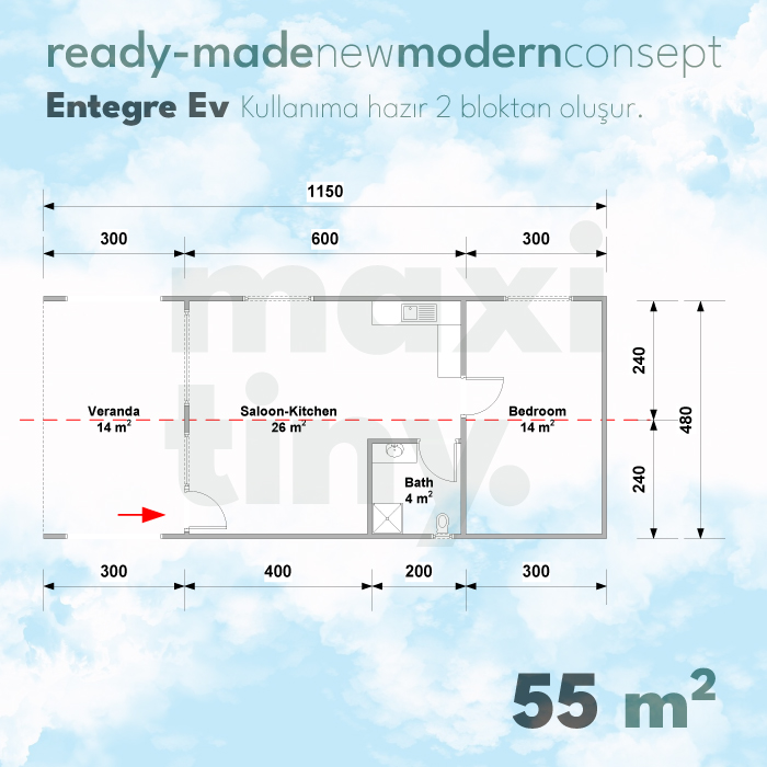 MONOBLOK ENTEGRE PAKET EV MODEL E13 55 m2